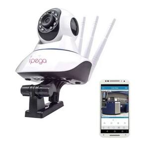 Câmera Ípega IP Wifi com Varredura Automática em FULL HD 1080p com áudio e entrada para cartão de memória de até 64gb (não incluso) Essa câmera através do sensor de movimento capta a movimentação de uma pessoa e segue o movimento dela por onde for. Com essa função não é preciso movimentar a câmera pelo aplicativo, toda movimentação que se passar a frente dela vai ser gravada! Além disso você pode acompanhar toda movimentação da câmera através do aplicativo ou de um DVR.