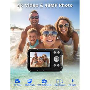 IMPORTANTE: Se for um produto elétrico, ele pode ser compatível com uma tomada de 110 volts. Se utilizado fora dos Estados Unidos, pode ser necessário um conversor de voltagem para garantir a operação adequada. Verifique se o produto que você está comprando é elétrico antes de considerar essas informações. Câmera impermeável subaquática YEEIN -?Câmera subaquática de 17 pés?Esta câmera à prova d'água tem o padrão internacional à prova d'água IP68 e você pode mergulhar 17 pés no mundo subaquático. Ideal para nadar, andar à deriva, surfar, mergulhar com snorkel, etc. O presente perfeito para crianças, adolescentes e iniciantes. -?Câmera impermeável 4K Ultra HD e 48MP com foco automático?Esta câmera à prova d'água captura imagens coloridas HD de 48 MP e suporta gravação de vídeo 4K Ultra HD para gravar claramente seus vídeos de viagens subaquáticas. Não é necessário pressionar o obturador até a metade para focar. Basta apontar a câmera para o objeto até que ele fique bem focado e, em seguida, pressionar o obturador para capturar a imagem desejada. -?Design de selfie em tela dupla?Design de tela dupla, pressione e segure o botão 'MODE' entre as câmeras frontal e traseira para facilitar as selfies subaquáticas. Leve e portátil, vem com bateria recarregável de 1050 mAh e cartão SD de 32 GB para cerca de 3 horas de uso por carga completa. É a melhor escolha para as crianças aprenderem fotografia. Presentes perfeitos de Natal, Natal e aniversário para crianças, adolescentes e iniciantes. -?Seguro e elegante?Vem com uma alça flutuante, que protege sua câmera digital à prova d'água e sua capa de telefone subaquática de afundar durante um cruzeiro, viagem de navio, mergulho com snorkel ou natação. O exterior de neoprene de mergulho com design de cores vivas é durável e confortável. A confortável alça flutuante que desliza facilmente em seu pulso e o comprimento perfeito do cordão facilitam a captura de fotos. -?Garantia de 1 ano?Qualquer problema ou sugestão, . Atenção: carregue a câmera antes de usá-la pela primeira vez.