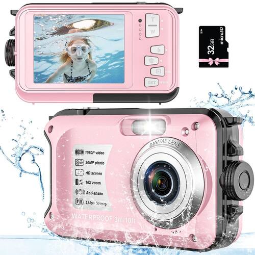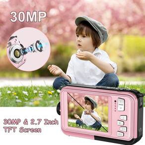 câmera subaquática - ?Resolução de vídeo HD 1080p? Esta câmera digital à prova d'água atualizada suporta vídeos 1080p e captura momentos emocionantes e inesquecíveis. Atende totalmente às suas necessidades, você pode desfrutar de um bom tempo com amigos, família. É uma ótima escolha para crianças. - ?Tela TFT de 2,7 polegadas e 30MP?A câmera digital está equipada com tela colorida de alta qualidade de 2,7 polegadas que você pode verificar a melhor foto que tirar. A resolução de imagem de 30 MP torna suas fotos mais claras. Basta levá-lo para sua viagem e aproveitar o tempo de filmagem. - ?Função anti-vibração e disparo contínuo?Esta câmera à prova d'água tem função anti-vibração e 6 disparos rápidos contínuos. Pode ajudá-lo a tirar fotos incríveis e você não perderá todos os momentos preciosos. - ?Impermeável até 3 metros?A função à prova d'água faz com que esta câmera digital possa ser submersa a 3 metros debaixo d'água sem uma capa à prova d'água. Você pode levá-lo para mergulho, acampamento, mergulho e outras atividades. Para levá-lo e você não perderá nenhum cenário que queira gravar. - ?Suporta carregamento durante a gravação? Esta câmera à prova d'água suporta gravação durante o carregamento, você não precisa se preocupar com o desligamento da bateria durante sua viagem. Lembre-se de comprar um cartão SD de boa qualidade classe 10 com 128 GB. Certifique-se de que a bateria esteja firmemente fechada e a tampa da bateria trava de segurança.