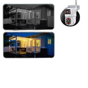 Lente dupla, tela dupla, alarme de luz policial, rastreamento humanóide, monitoramento de interfone de voz bidirecional 360, visão noturna colorida, IP66 à prova d'água, monitoramento remoto de telefone celular, compartilhar vídeo, armazenamento do cartão do SD, 24 horas gravação video.