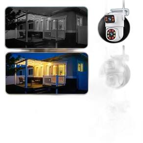 Lente dupla, tela dupla, alarme de luz policial, rastreamento humanóide, monitoramento de interfone de voz bidirecional 360, visão noturna colorida, IP66 à prova d'água, monitoramento remoto de telefone celular, compartilhar vídeo, armazenamento do cartão do SD, 24 horas gravação video.