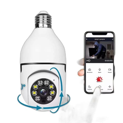 Câmera lâmpada wi-fi ip de segurança A câmera lâmpada wi-fi ip de segurança é a solução ideal para monitorar a sua casa ou empresa. Com instalação fácil e rápida, basta conectá-la em um bocal de lâmpada comum. Oferece visão em tempo real, controle de movimentação e zoom pelo celular, além de luz e áudio bidirecional. Possui alta resolução full hd 1080p e detector de movimento que envia notificações diretamente para o seu celular.