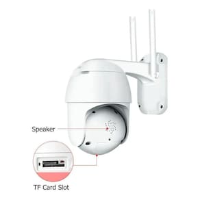 - câmera externa wifi dome ptz - gira 355 na horizontal - 100 na vertical - todos os comandos pelo celular - conexão sem fio wifi - slot para cartão de memória de até 128gb microsd (cartão não incluso) - aplicativo: yoosee - android e ios - detecção de movimento com notificação em seu celular - sistema infravermelho, filma em total escuridão - painel infravermelho de alta eficiência com baixo consumo de energia e distâncias de iluminação de até 50 metros. - microfone e alto falante integrados - compartilhamento: limite de até 4 pessoas pelo app - visualização em tempo real. - rastreamento de objetos (é necessário ativar a função na câmera); - luz branca ( pode ser ativada pelo app ) - ir ( ativação automática ) - função ptz- é possível criar posições e salvá-las (obs: não possui a função automática ptz devido ao rastreamento de objetos)