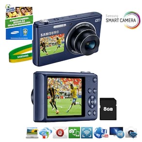 Câmera Samsung Smart DV2014F Preto Cobalto – 16.1 MP, LCD Duplo Traseiro de 2.7” e Frontal 1.5”, Wi-Fi , Zoom Óptico 5x, Vídeo HD + Cartão de 8GB