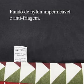 Ela é feita de nylon paraquedas para proporcionar impermeabilização completa para nenhum tipo de liquido entre em contato com os enchimentos, o fundo impermeável usa outro tipo de nylon e o enchimento é de fibra siliconada antialérgica. Possui zíperes de fora a fora para retirar o enchimento, podendo ser lavado quantas vezes precisar.