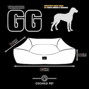Por favor, antes de efetuar a compra, certifique-se sobre o tamanho da cama para o seu bebê pet. Dimensão total: 85 cm x 70 cm Area interna: 55 cm x 45 cm Raça de cachorro recomendada: raças médias/ grandes bulldog inglês, bulldog francês, beagle, pitbull
