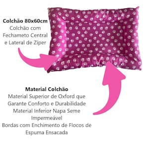 O produto é feito com tecido oxford, bordas com enchimentos de flocos de espuma ensacada que abraçam seu pet e servem de travesseiro, leve, macio e fácil de transportar, podendo ser dobrado ou até mesmo enrolado.