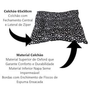 O produto é feito com tecido oxford, bordas com enchimentos de flocos de espuma ensacada que abraçam seu pet e servem de travesseiro, leve, macio e fácil de transportar, podendo ser dobrado ou até mesmo enrolado.