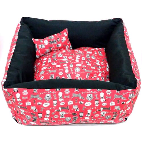 Todo revestido em zíper, o que facilita a retirada da capa para lavar; Formato quadrado; Todas as caminhas acompanham travesseiro em formato retangular; Cor: vermelho; Tamanho M Medidas aproximadas: 60 cm x 60 cm e 25 cm de altura Estampa conforme foto. Muito macio, confortável, e durável. Marca: Não Informado