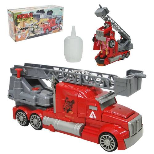 Caminhao bombeiro bate e volta transforme robo esguicha agua som e luz a pilha
