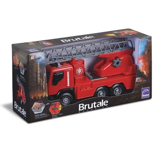 O carro de bombeiro Brutale da Roma Brinquedos possui escada que gira 180°, com regulagem de altura. Conta também com tanque de abastecimento e bomba d'água, e a criança consegue lançar água a longa distância. Esse carro de bombeiro é rico em detalhes e fará a diversão da criançada!