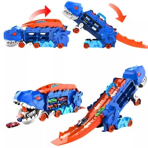 Design de tema de dinossauroEste brinquedo educativo apresenta um design exclusivo de tema de dinossauro que não só atrai a atenção das crianças, mas também estimula seu interesse e curiosidade sobre os dinossauros.Pista de lançamento e deslizamento:O carro de brinquedo dinossauro pode ser lançado e deslizado, permitindo que as crianças experimentem velocidade e paixão durante a brincadeira, e também ajuda a melhorar a coordenação olho-mão.Função de alimentação e armazenamento:O dinossauro pode engolir o mini carro na boca, após ser engolido, o carro pode deslizar para fora da boca do dinossauro. O corpo do dinossauro pode armazenar carrinhos de brinquedo, o que não só facilita a arrumação das crianças depois de brincar.Alta qualidadeO brinquedo Dinosaur Eating Cars é feito de material de alta qualidade, que é resistente ao desgaste e durável, permitindo que as crianças brinquem com ele.Educativo e divertidoEste brinquedo não só proporciona diversão para as crianças, mas também permite que elas aprendam diversos conhecimentos durante o jogo, melhorando suas habilidades cognitivas e operacionais.Especificação:Material: ABSAcompanha: 4 Carrinhos