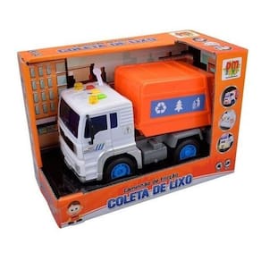 Caminhão coleta de lixo com som e luz fricção laranja Este caminhão tem o seu design muito parecido com o verdadeiro. Ele emite som e luz, As suas rodas são de fricção facilitando na hora da brincadeira.Para inserir as baterias 1- abra o compartimento de baterias localizado na parte de cima do brinquedo Com o auxílio de uma chave phillips 2- insira 3 baterias ''ag13''. 3- feche o compartimento de baterias com auxílio de uma chave phillips 4- pilhas inclusas no brinquedoCor: laranjaBrinquedo para crianças acima de 3 anos de idadeDimensões aprox - comprimento 19 cm - altura 10 cm - largura 7 cm