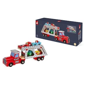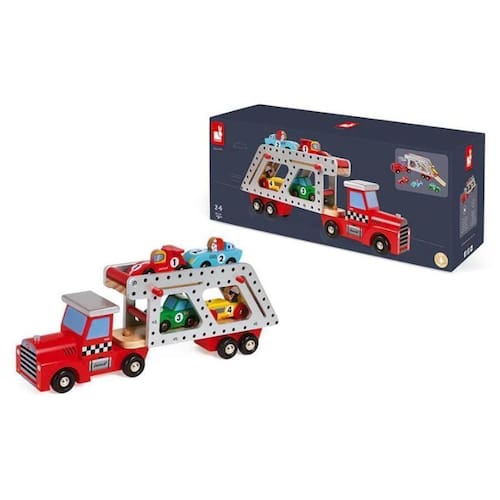 Um veículo que transporta outros veículos: é sempre impressionante para os pequenos verem esse tipo de caminhão na estrada durante um passeio de carro. Essa versão menor irá encantar os fãs de todos os tipos de veículos e carros de corrida Com sua rampa de fácil manuseio, este caminhão de madeira pode acomodar dois carros de corrida em cada nível, ou seja, 4 carros no total 1 Formula vermelho, 1 Speed azul, 1 Roadster verde e 1 Retromotor amarelo para serem transportados no caminhão ou brincados separadamente. Para fazer a rampa deslizar para trás do caminhão e a porta abrir, basta puxar as alças vermelhas pequenas. Este incrível caminhão irá encantar todos os entusiastas de veículos com 2 anos de idade ou mais, com uma imaginação vívida Fabricante: Maped Ref.: J08572 Código Barras: 3700217385729 Idade recomendada: Acima de 2 Anos Dimensões da Embalagem AxLxC : 16X42X12cm do Vendedor: 7 dias do Fabricante: 3 meses Homologação Inmetro: 001009/22-9 Marca: Não Informado