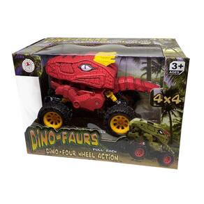 - INCLUDES one dinosaur truck with amazing pull back action. Works on carpet too. Size: 7" L x 4. 5" H x 4" W.