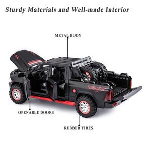 Caminhões de brinquedo para meninos RAM 1500 caminhonete brinquedos modelo de metal fundido carros com luz e som, brinquedo de puxar para trás para crianças de 3 anos ou mais, presentes de Natal - [Caminhões de brinquedo de metal resistente]: Caminhões de brinquedo de metal fundido bem feitos, resistentes o suficiente para suportar brincadeiras de meninos. Caminhões de brinquedo sólidos para meninos de 3 a 5 anos. - [Caminhão de brinquedo de puxar para trás]: Caminhão de brinquedo realista com forte poder de puxar, brinquedos de caminhão muito rápidos para meninos de 3 anos de idade que amam jogos de perseguição de carro. - [Brinquedos engraçados de caminhonete]: caminhonete de brinquedo Ram 1500 com portas, capô, porta traseira, efeito de luz e som realistas. Caminhões de brinquedo interessantes para meninos de 4 a 7 anos. - [Carro modelo Ram escala 1 32]: C x L x A (centímetros): 17,8 cm x 7,6 cm x 7,6 cm. O tamanho certo para os pequenos pegarem. Cada parte dos carrinhos de brinquedo para meninos de 4 a 7 anos é lisa, segura para crianças. - [Ótimos presentes para crianças e adultos]: exterior legal, interior bem feito e embalagem bonita. Brinquedos de presente ideais para meninos, meninas e amantes de carros adultos, adequados para Natal, aniversário, dia das crianças, dia dos pais ou outros dias significativos.
