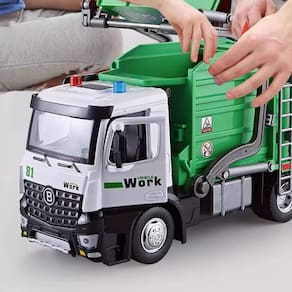 Material: liga, ABS, componentes eletrônicos Cor: verde Tamanho do pacote: 33 x 8 x 12 cm Peso do pacote: 0,5 kg Lista de embalagem: 1 x caminhão de brinquedo Design realista de caminhão de lixo: este brinquedo de caminhão de lixo extra grande foi projetado com incrível atenção aos detalhes, incluindo uma cor verde, caixas de coleta de lixo e características realistas, perfeito para crianças que amam veículos urbanos e de construção. Construção durável em liga fundida: Feito de liga fundida de alta qualidade e plástico ABS, este caminhão é resistente e construído para durar, tornando-o uma excelente escolha para um jogo duradouro, mantendo sua cor verde vívida e design detalhado. Jogo educativo de classificação de lixo: O caminhão vem com lixeiras, incentivando as crianças a se envolverem em brincadeiras criativas e aprenderem sobre coleta de lixo e responsabilidade ambiental, enquanto se divertem com o brinquedo do caminhão. Perfeito para crianças e colecionadores: medindo 33 x 8 x 12 cm e pesando 500 g, este brinquedo é ideal para brincadeiras infantis ou como peça colecionável para entusiastas de veículos de construção que apreciam artesanato de qualidade e atenção aos detalhes. Ideal para presentes de aniversário e brincadeiras: este caminhão de lixo é um maravilhoso presente de aniversário para crianças, combinando diversão com educação. Também é ótimo para ensinar as crianças sobre reciclagem e gerenciamento de resíduos enquanto se divertem com brincadeiras criativas.