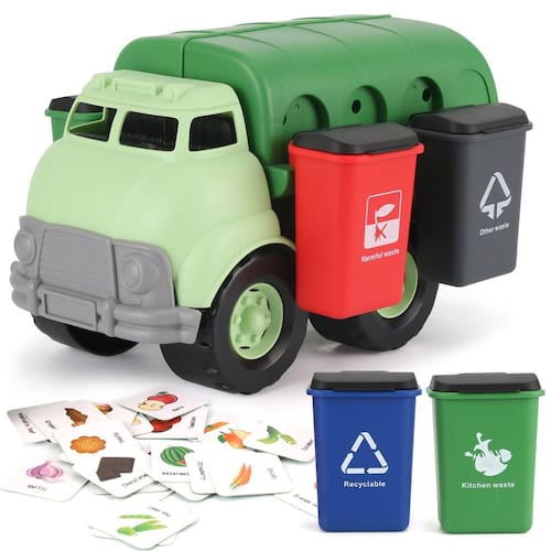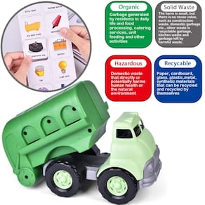 Procurando um brinquedo divertido e educativo para seu filho? Não procure mais, este brinquedo de caminhão de reciclagem super legal! Com quatro lixeiras e latas de reciclagem diferentes na calçada, além de 108 cartões didáticos ilustrados com lixo, seu filho aprenderá o básico da reciclagem enquanto se diverte. O brinquedo de caminhão de reciclagem possui uma cama de reciclagem móvel, porta traseira aberta e fechada e cama inclinável para trás, facilitando a brincadeira e a exploração de seu filho. Use o brinquedo do caminhão de lixo em um ambiente de dramatização para ensinar as crianças a manter o ambiente arrumado e reciclar itens que talvez não precisemos mais. Com a capacidade de coletar, classificar e descartar materiais recicláveis, seu filho aprenderá a importância de reduzir, reutilizar e reciclar. Depois que o lixo e as latas de reciclagem estiverem cheias até a borda, é hora de ir para a usina de reciclagem. O brinquedo do caminhão de lixo não é apenas divertido e envolvente, mas também melhora as habilidades motoras grossas e desperta o poder imaginativo de seu filho. Seja brincando em ambientes fechados ou ao ar livre, seu filho vai adorar explorar o mundo do gerenciamento de resíduos com este brinquedo incrível. O brinquedo do caminhão de lixo vem embalado em uma incrível caixa de exibição, tornando-o o presente perfeito para qualquer criança. Além disso, é feito sem BPA, ftalatos, PVC ou revestimentos externos, garantindo que seu filho possa brincar com segurança. Recomendado para maiores de 3 anos, este brinquedo de caminhão de reciclagem é a melhor maneira de inspirar a criatividade e a imaginação de seu filho e, ao mesmo tempo, ensiná-lo a importância da reciclagem. Então, por que esperar? Dê ao seu filho o presente da diversão e da educação com este incrível brinquedo de caminhão de lixo hoje! - DIVERSÃO EDUCACIONAL SOBRE LIXO: dê ao seu filho a melhor experiência de brinquedo de caminhão de lixo com este incrível caminhão de gerenciamento de resíduos, completo com 4 latas de lixo e 108 cartões de classificação. - CAMINHÃO DE LIXO DIVERTIDO: com um design realista com cama de reciclagem móvel, porta traseira aberta/fechada e 3 compartimentos para pendurar as lixeiras, seu filho se sentirá como um motorista profissional de gerenciamento de resíduos. - ROBUSTO E PRONTO: Construído de forma resistente com um design leve e resistente, este brinquedo de caminhão de lixo pode lidar com qualquer aventura recreativa interna ou externa que seu filho possa oferecer. - APRENDA A RECICLAR: ensine a seu filho a importância da reciclagem com este brinquedo super legal para caminhão de lixo. Seu garotinho vai se divertir separando e separando o lixo como um verdadeiro herói ecológico. - O MELHOR BRINQUEDO VERDE: Medindo 11,8" x 6,1" x 7,98", este brinquedo de caminhão de lixo tem o tamanho perfeito para meninos e meninas brincarem e explorarem o mundo do gerenciamento de resíduos. Mas não se deixe enganar pelo tamanho, seu filho terá grandes aventuras com esse brinquedo super legal de caminhão de lixo!