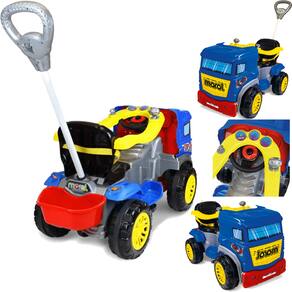 O Truck é um brinquedo completo, uma ótima escolha que vai marcar a infância do seu bebê! Ele conta ainda com haste direcionável e removível, som, buzina, rodas com anel antiderrapante, assento com encosto anatômico, cercado removível, apoio para os pés removível, suporte para bolsa/sacola na alça da haste e sistema de tração para maior conforto e agilidade ao pedalar.