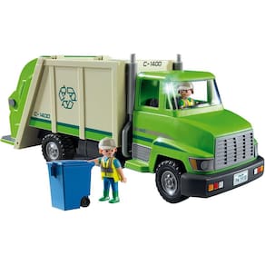 As crianças podem aprender a importância da reciclagem enquanto se divertem com o Playmobil Green Recycling Truck. Ajude a recolher recicláveis levantando o recipiente de reciclagem e esvaziando seu conteúdo na parte de trás do caminhão. Conjunto inclui duas figuras e outros acessórios.