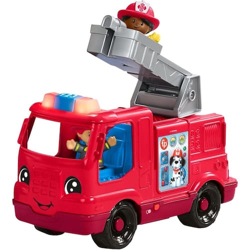 As crianças podem criar suas próprias missões divertidas com este caminhão de bombeiros de brinquedo Little People da Fisher-Price. Este carrinho de brinquedo musical para empurrar possui luzes divertidas, sons realistas, músicas e frases para cantar junto e uma escada que as crianças podem levantar e girar. O caminhão de bombeiros inclui 2 bonecos de bombeiro que podem ficar sentados no carro. Um no banco do motorista e outro na parte de trás do veículo, permitindo histórias ainda mais divertidas. Use o botão do globo para selecionar o idioma desejado.