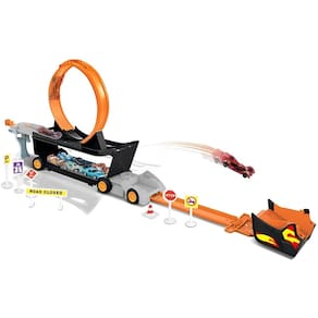 O Caminhão com Pista vem com 1 carrinho de corrida super veloz e diversos acessórios para montar sua pista de corrida com um super salto!