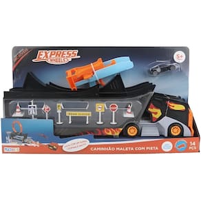 Marca: Multikids Modelo: Express Wheels Faixa etária: +5 anos Composição do Material: Plástico Conteúdo da Embalagem: 1 Express Wheels Caminhão Com Pista, 1 Carrinho, Acessórios Express Wheels