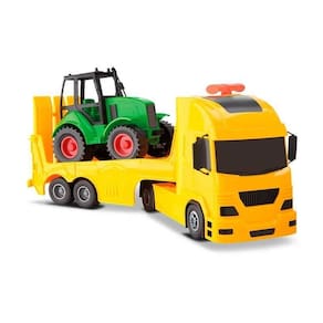 O Caminhão Pollux Construction da Silmar trás em sua plataforma uma Retroescavadeira para a criança se divertir criando suas próprias aventuras O Caminhão é grande e robusto.