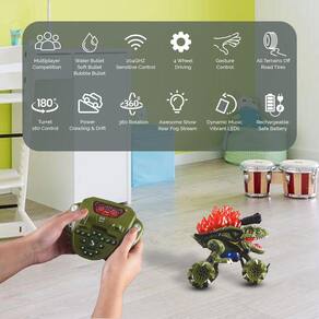 - Rugidos recarregáveis: não tenha medo do fim do tempo de jogo! Equo com uma bateria recarregável, este carro de corrida com controle remoto gel blaster dino garante aventuras prolongadas com tema de dinossauros, oferecendo infinitas horas de diversão emocionante sem interrupção.