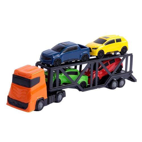 Caminhão Roda Livre Cegonha 4 Carrinhos Frot Caminhão modelo Cegonha, conhecido por transportar carros de um ponto para o outro, perfeito para as brincadeiras de faz de conta.\nFabricado em plástico, acompanha 4 lindos e velozes carrinhos em seu interior.\nAuxilia na atividade sensorial, motora, criação de histórias e interação social.\nMovimenta para manobras mais radicais, a porta abre para descarregar.\nEspecificações:\nMarca : DIVPLAST\nTipo de material : Plástico\nCores ou Estampa : Colorido\nDimensões do Produto : 11,5 X 34 X 5,5 CM\nDimensões da Embalagem : 15 X 37,5 X 9 CM\nPeso Bruto (Gramas) : 0.390 Marca: Não Informado