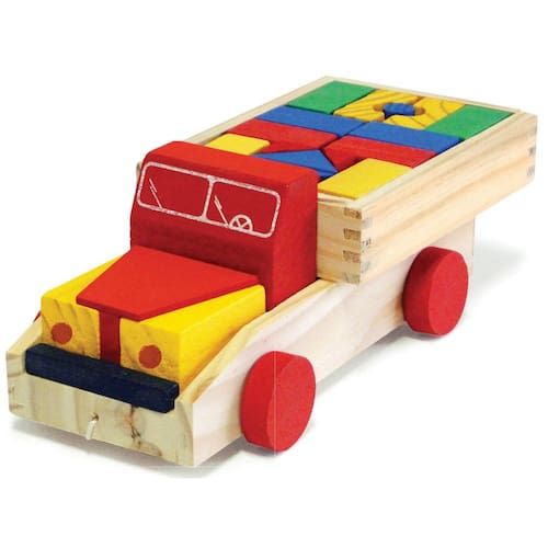 Caminhão super transblocos A construção é uma das atividades que mais interesse desperta na criança. Usando blocos para concretizar as mais diferentes idéias a criança estará desenvolvendo sua atividade, ao mesmo tempo que manipulará peças de diferentes tamanhos formas e cores. Essa manipulação do material é condição essencial para que ela consiga alcançar a compreensão de certos conceitos básicos, tais como: ordenação, permanência. Desenvolve ainda a atenção e concentração, motricidade ampla e fina, coordenação viso-motora, equilíbrio estático. Desenvolve: criatividade, conceitos matemáticos, atenção, concentração, coordenação viso-motora, motricidade, relações espaciais. Idade: a partir de 2 anos. Composição: contém 24 blocos de construção em madeira selecionados criteriosamente quanto a cores e formatos. Tintas não tóxicas. OCP0061 CE-BRI/NNAC-00128-6A Ean: 7898325170330