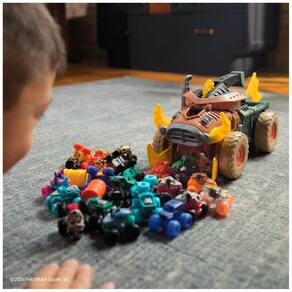 Monster Jam Mini Jam, Megalodon Mad Hog Chomper e Monster Truck, limpeza e armazenamento divertidos, presentes de brinquedo para crianças a partir de 3 anos - Ação de picar porco louco: experimente a emoção enquanto o gigante Megalodon Mad Hog mastiga e pega qualquer caminhão e barril Mini Jams em seu caminho - INCLUI CAMINHÃO MEGLAODON E BARRELS: Inclui Mini Caminhão Megalodon Monster Jam Jams em escala 1:87 e 2 barris para um pouco de diversão Mad Hog - Limpeza criativa: incentiva as crianças a limparem sozinhas enquanto usam o Megalodon Mad Hog para reunir e armazenar caminhões, tornando a organização tão agradável quanto brincar - Construa sua coleção Monster Jam: compatível com todos os caminhões Monster Jam Mini Jams em escala 1:87 para infinitos cenários de jogo de mix-and-match - Presente para crianças: Monster trucks para meninos e meninas a partir de 4, 5, 6 e 7 anos. Brinquedos Monster Jam de brinquedo, carrinhos de brinquedo e caminhões RC estão no topo das listas de desejos de aniversário, brinquedos de férias e jogos - Inclui: 1 caminhão Monster Jam Mini Jams Megalodon, 1 Warthog, 1 bandeira, 2 barris - Coberto pelo compromisso Spin Master Care. Veja abaixo os detalhes completos