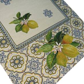 Caminho de mesa azulejo 45x140cm produzido em gobelino europeu de produção artesanal e limitada. A principal característica do gobelino é a sua longa durabilidade, maior do que qualquer tipo de tecido. Também pode ser lavado na máquina de lavar sem cuidados especiais. O caminho pode ser utilizado como centro de mesa, como trilho, tete-a-tete, em cima de aparador e etc. . Tudo para deixar seu ambiente deslumbrante e encantador