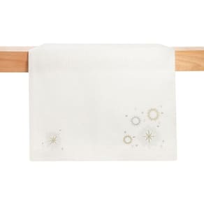Uma mesa bem decorada é capaz de transformar o ambiente, mesmo que fora dos momentos das refeições, deixar a mesa bonita e bem organizada traz uma sensação de bem-estar. O Caminho de mesa Natal Bling é produzido 100% em poliéster com bordado em fio metálico inspirado nas noites estreladas.