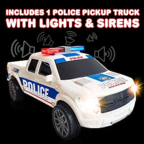 APROVEITE O DIA DAQUELE ASPIRANTE A AGENTE DA LEI Awesome Justice Mantenha esse aspirante a oficial ocupado por horas enquanto ele aplica a lei, coloca bandidos em seus lugares e mantém a ordem enquanto navegam na frieza! Esta não é uma caminhonete policial qualquer; nós a enchemos de recursos super legais para uma diversão incrível. Possui faróis que acendem, 3 sons de sirene diferentes e um mecanismo push n' go para facilitar a reprodução. As luzes e os sons frios são alimentados por 3 baterias LR44 que vêm incluídas. Isso significa diversão incrível assim que sai da caixa. Ótima ideia de presente Em busca do melhor presente de aniversário para aquele menino ou menina? Um presente de Natal ou feriado que qualquer criança não esquecerá tão cedo? Faça-os pular de alegria com este caminhão policial super legal e iluminado! É exatamente o que você precisa para fazer da manhã de Natal um sucesso ou coroar o aniversário deles com sorrisos satisfeitos. Seguro, durável e fácil de usar, este caminhão é perfeito para bebês e crianças de 3 anos ou mais. Acreditamos tanto na qualidade do nosso carrinho de brinquedo que o apoiamos com uma garantia de devolução do dinheiro sem complicações. Então, vá em frente, desperte sorrisos sem ter nada a perder. Veja por que você vai adorar este carro de brinquedo policial: ? Os faróis acendem e ele produz 3 tipos de sons de sirene . ? Destaca-se com um design realista e decalques incríveis. ? As luzes e os sons são alimentados por 3 pilhas LR44 incluídas. ? Feito com plástico seguro e de alta qualidade para maior durabilidade. ? Ótimo presente de aniversário ou Natal para crianças de 3 anos ou mais . Torne esse dia especial inesquecível com a caminhonete policial iluminada mais legal! - LEDs E SONS INCRÍVEIS: inspire horas de diversão animada com este carrinho de brinquedo policial super legal para crianças. Seus faróis acendem e ele produz 3 sons de sirene diferentes sempre que é empurrado para frente e para frente. O brinquedo perfeito para meninos e meninas com aspirações policiais. - LEGAL E REALISTA: torne esse jogo de policiais e ladrões ainda mais divertido. Com vidros escuros, adesivos policiais bacanas e um design realista, esta caminhonete policial para meninos leva a brincadeira de fingir a um novo patamar. Mede 10” (L) x 3,75” (A) x 4,25” (L) de uma roda dianteira à outra. - MECANISMO PUSH N' GO: tudo o que esse caminhão de brinquedo push n go precisa é de um bom empurrão para frente e ele se afasta. É o presente perfeito para manter as crianças imersas em brincadeiras imaginativas por horas, incentiva atividades saudáveis e ajuda a desenvolver habilidades motoras em crianças pequenas. - Ótima ideia de presente: está procurando um presente de aniversário que qualquer menino ou menina aprecie? Um presente de Natal que eles guardarão por um tempo? Esta incrível caminhonete policial iluminada é um presente memorável. Ótimo para crianças e bebês de 3, 4, 5, 6, 7, 8, 9 e 10 anos. - COMPRE COM CONFIANÇA: Divirta-se com nossa caminhonete de polícia sabendo que estamos totalmente à sua disposição. Não está satisfeito com nosso produto? Não se preocupe, enviaremos uma substituição ou emitiremos um reembolso total. Clique em “Adicionar ao carrinho” agora para comemorar o dia daquela criança!