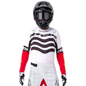 Detalhes técnicos que fazem a diferença: Gola com abertura sem costuras e punhos colados, garantindo conforto e praticidade na hora de vestir; Estrutura sem costuras laterais e axilares, reduzindo pontos de atrito e aumentando o conforto; Parte traseira alongada, ideal para cobertura total e integração com as calças MX da Alpinestars; Malha stretch com corte multidirecional, acompanhando os movimentos naturais do corpo; Corte anatômico em múltiplos painéis, otimizando o encaixe nos ombros, braços e costas.