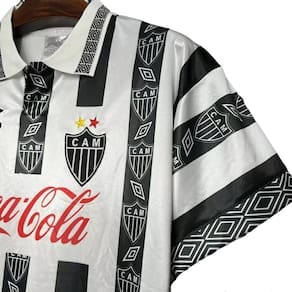 Produto: Camisa Atlético Mineiro 1995 Retrô Cor: Preto/Branco Gola: Polo Canelada Escudo: Bordado Patrocínio: Sim Tecido: Respirável e Leve Modelagem: Tradicional
