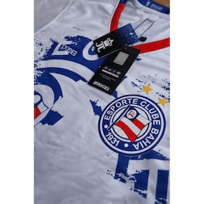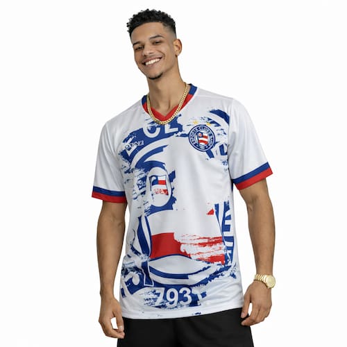 Com um visual marcante e cheio de identidade, a camisa traz um design que valoriza a trajetória vitoriosa do Bahia. O destaque fica para o escudo emborrachado, que proporciona um acabamento premium, mais durável e com presença forte no peito, reforçando ainda mais a tradição do clube.