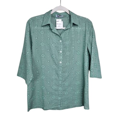 Características: O modelo possui mangas 3/4, o acabamento conta com botões discretos na mesma cor do tecido, perolados. Fabricada em Laise de Algodão, um tecido de caimento impecável e toque macio. Use em todas as ocasiões!