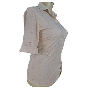 Características: O modelo conta com mangas 3/4, o acabamento conta com botões discretos na mesma cor do tecido. Fabricada em Laise de algodão, um tecido leve, de caimento impecável e toque macio. Use em looks na praia, compondo looks com jeans em uma pegada mais urbana, ou até mesmo com um look mais casual, uma peça que vale.