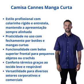 Camisa Cannes Manga Curta Elegância, conforto e praticidade para o dia a dia A camisa Cannes manga curta é ideal para compor uniformes com um toque de sofisticação. Seu corte social proporciona um caimento impecável, enquanto o tecido leve garante conforto durante todo o expediente.