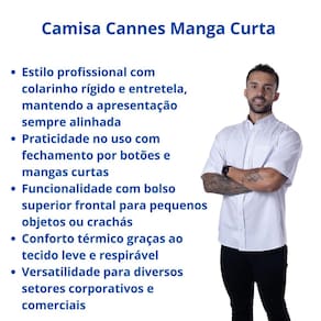 Garanta agora sua camisa Cannes manga curta e proporcione à sua equipe um visual elegante e funcional!