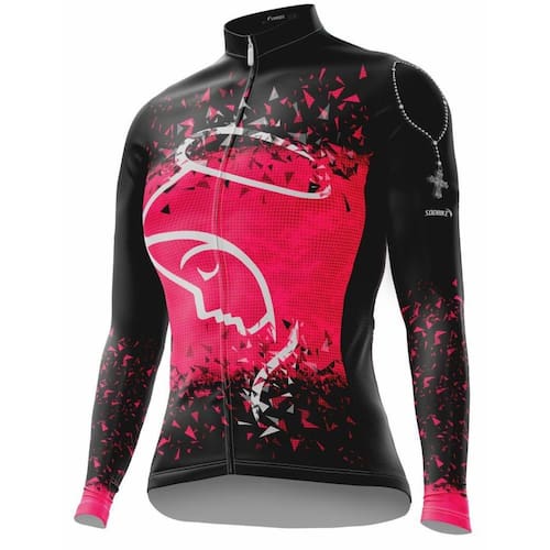 Mangas longas, ziper full, 3 bolsos traseiros com faixas refletivas.