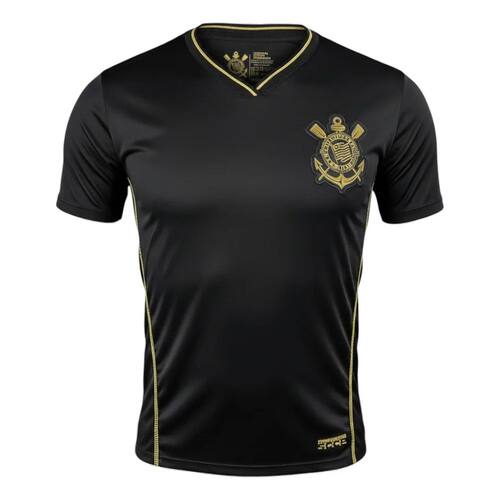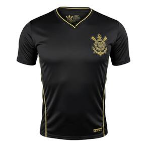 Camiseta Corinthians Preta e Dourada Masculina – Gola V