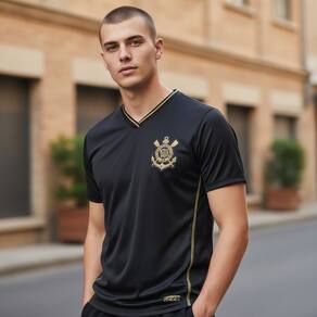 Mostre sua paixão pelo Timão com estilo e sofisticação. A camiseta masculina Corinthians preta com detalhes dourados traz um visual moderno e imponente, ideal para torcedores que gostam de se destacar dentro e fora dos estádios.