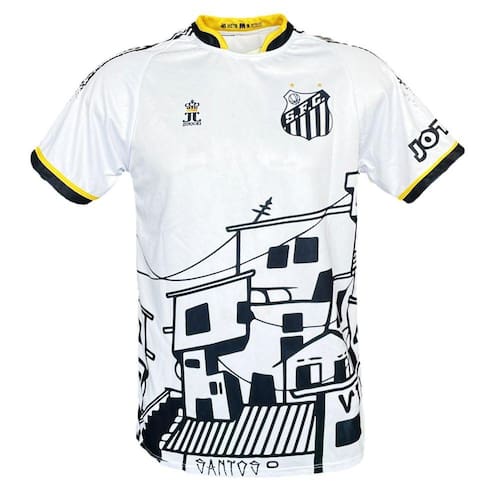 A camisa do Santos masculina é de mangas curtas, com gola em formato especial.