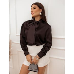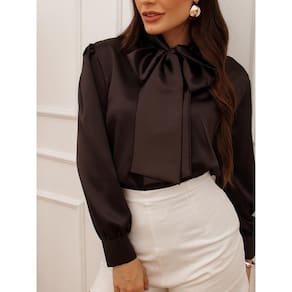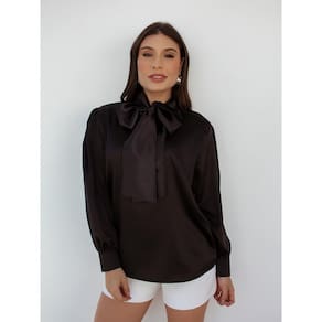Camisa social de Alfaiataria feminina manga longa Teodoro em crepe acetinado.