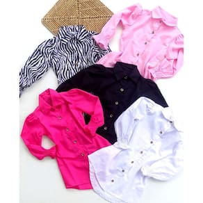 Linda e moderna camisa social de botão feminina infantil com manga princesa, elástico nos punhos deixando o look ainda mais elegante.