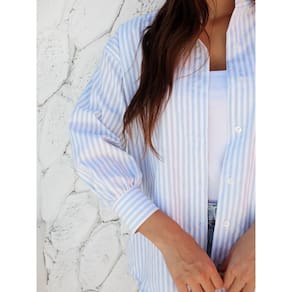 Clássica camisa listrada de alfaiataria manga longa feminina Teodoro.