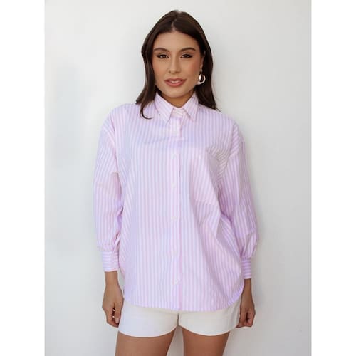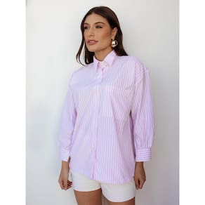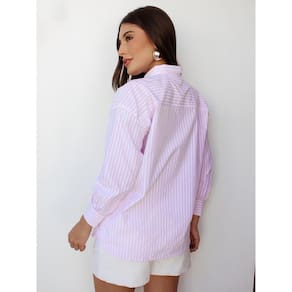 Clássica camisa listrada de alfaiataria manga longa feminina Teodoro.